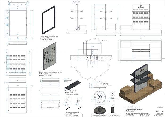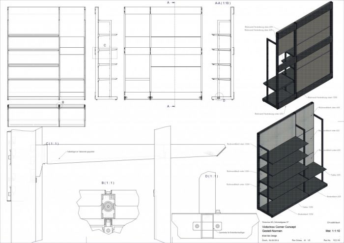 Aus dem Conceptkatalog die Corner-Concept-Gestelle materialisieren, konstruieren, prototypieren und bis zur Serienreife nachpolieren.