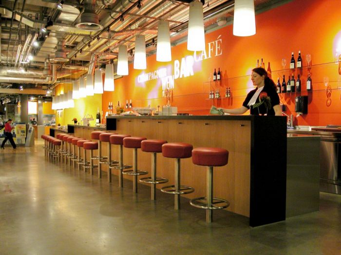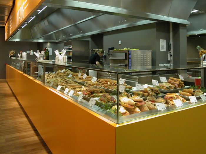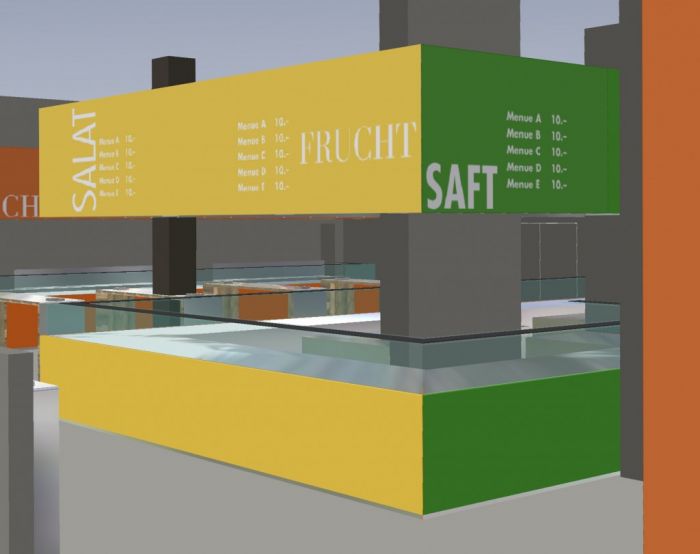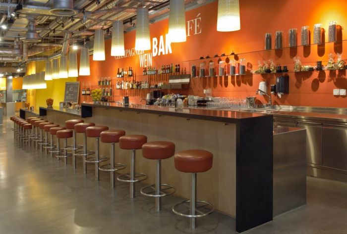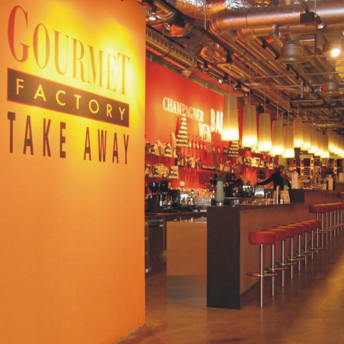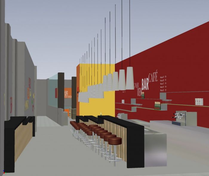 „Café Bar“: Aufwertung des Verbindungsgangs zur Gourmet Factory.
